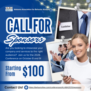 Please go to https://behaviorlive.com/conference/ALABA2026/sponsors for more details and to purchase your spot today! Act fast because we have a limited number of exhibitor tables and sponsorship spots available.